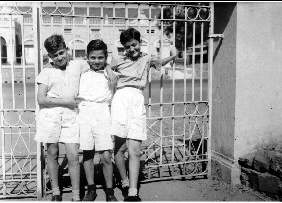 ![]() Life must go on. In the aftermath of the Farhud, 3 boys of Iraqi origin, swing on a gate in Poona, near Bombay in India. L-R, Edmond Khedhouri, Zaki Ades (son of Shafiq Ades who was hanged in Basra on a trumped up charge), and Edward Ani (son of Reubein and Georgette Ani). |